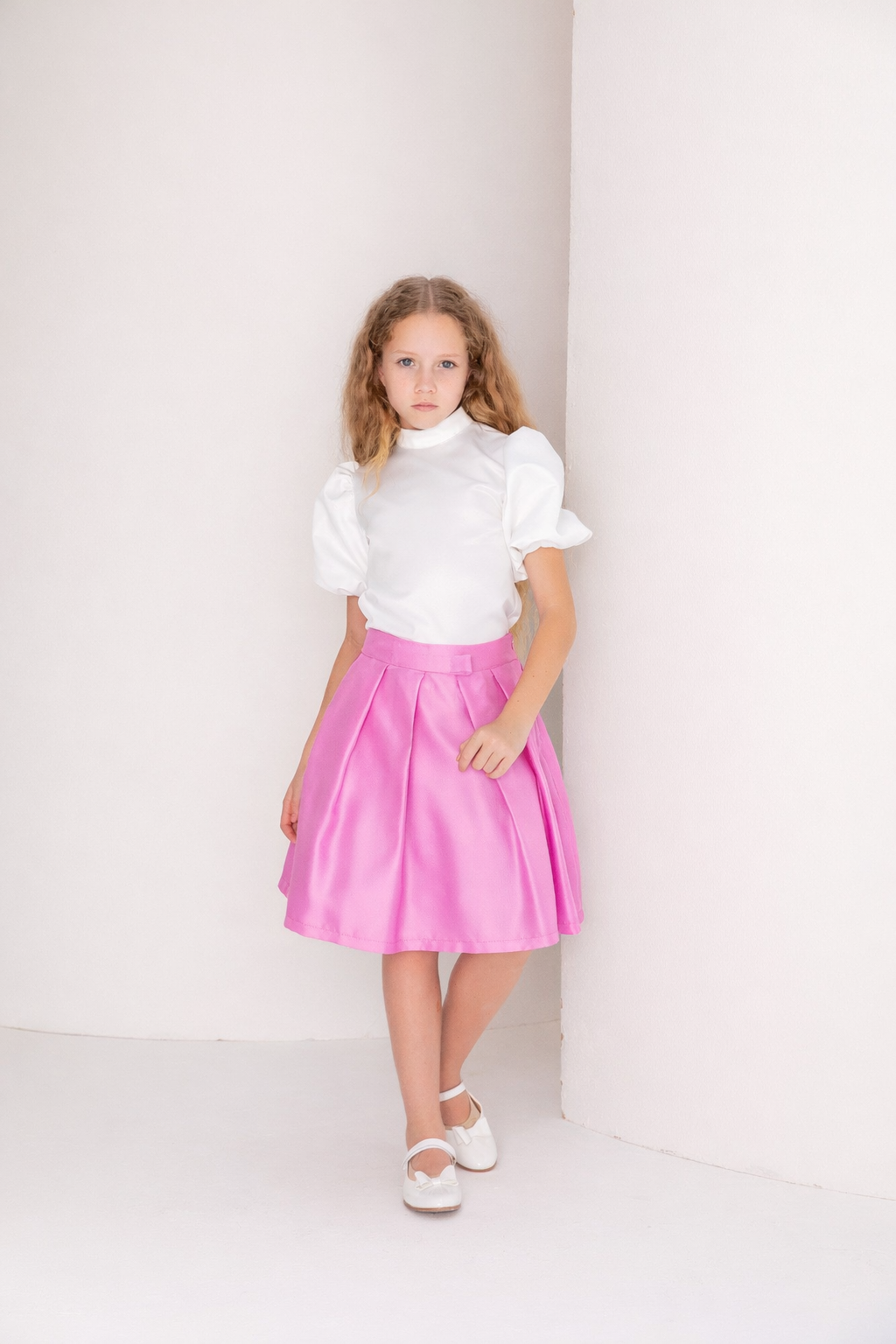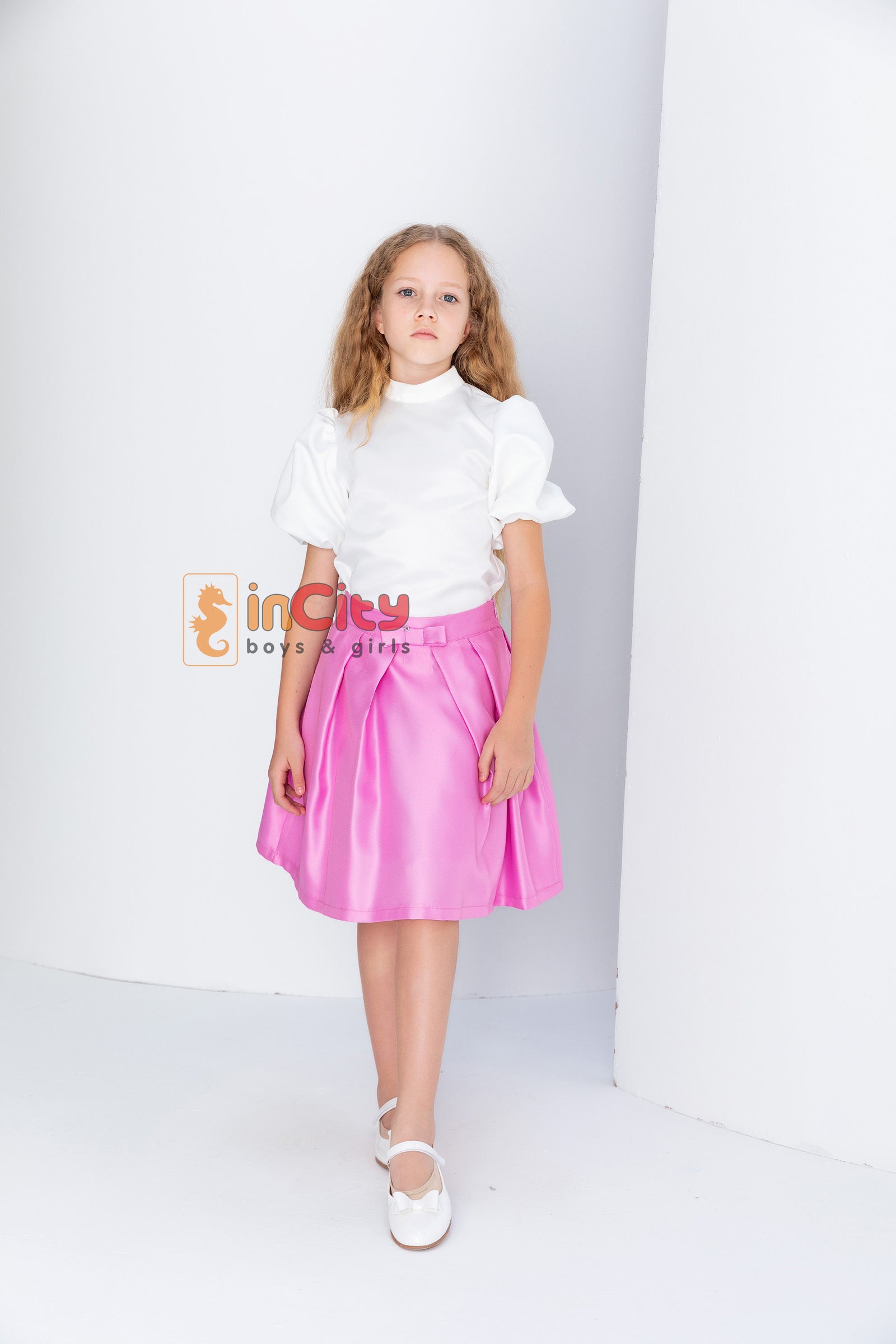 Kız Çocuk Pileli Kurdele Detaylı Fermuarlı Etek