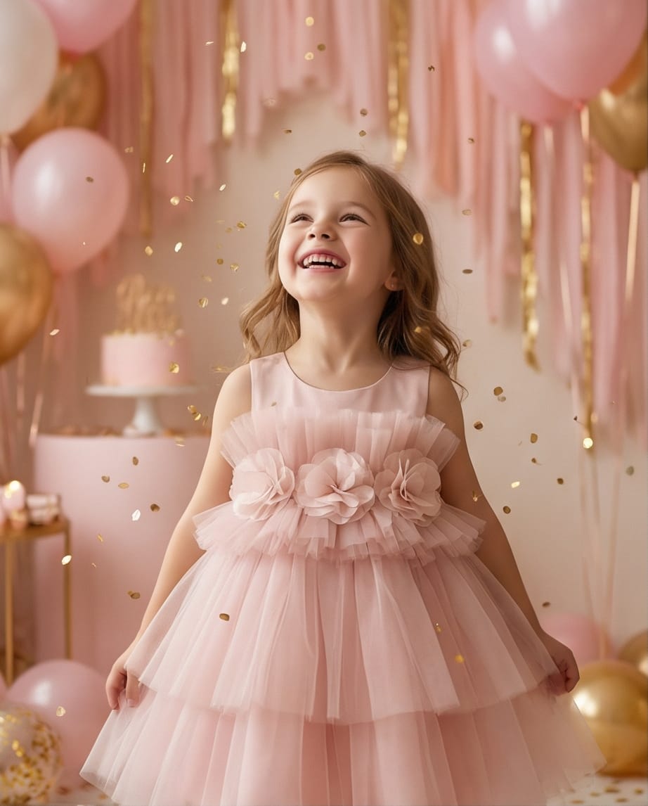 Kız Çocuk Askılı Kol Detaylı Full Dantel Astarlı Elbise