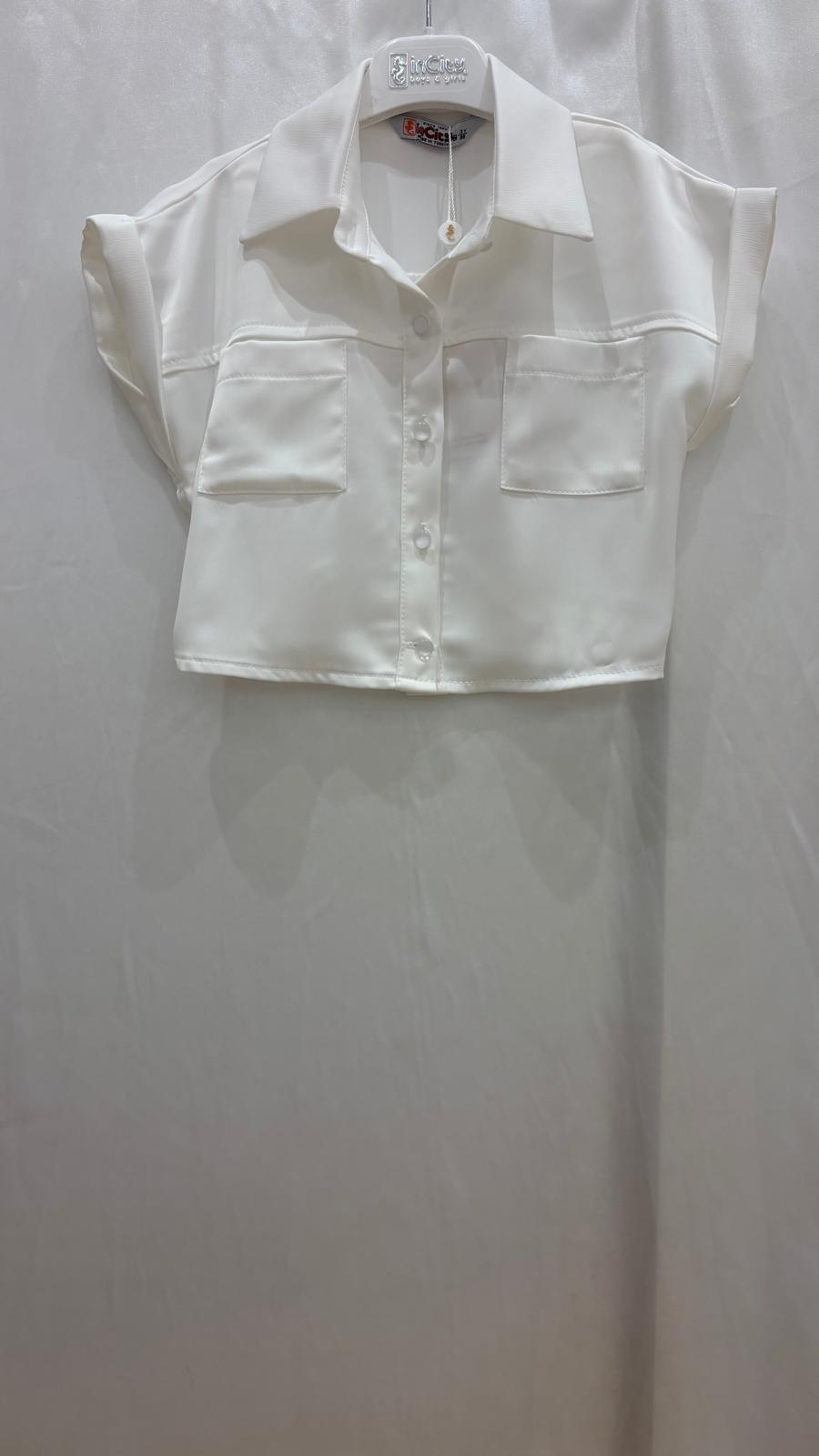 Kız Çocuk Klasik Yaka Cepli Duble Kol Gömlek