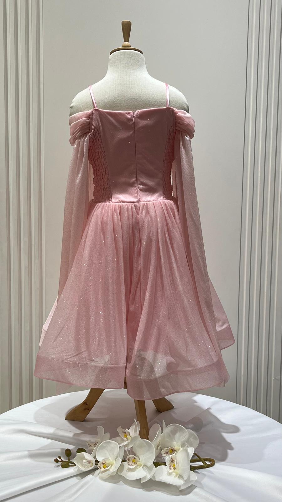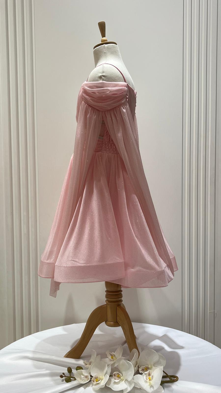 Kız Çocuk Sim Detaylı Taş Şeritli Pelerin Kol Abiye Elbise