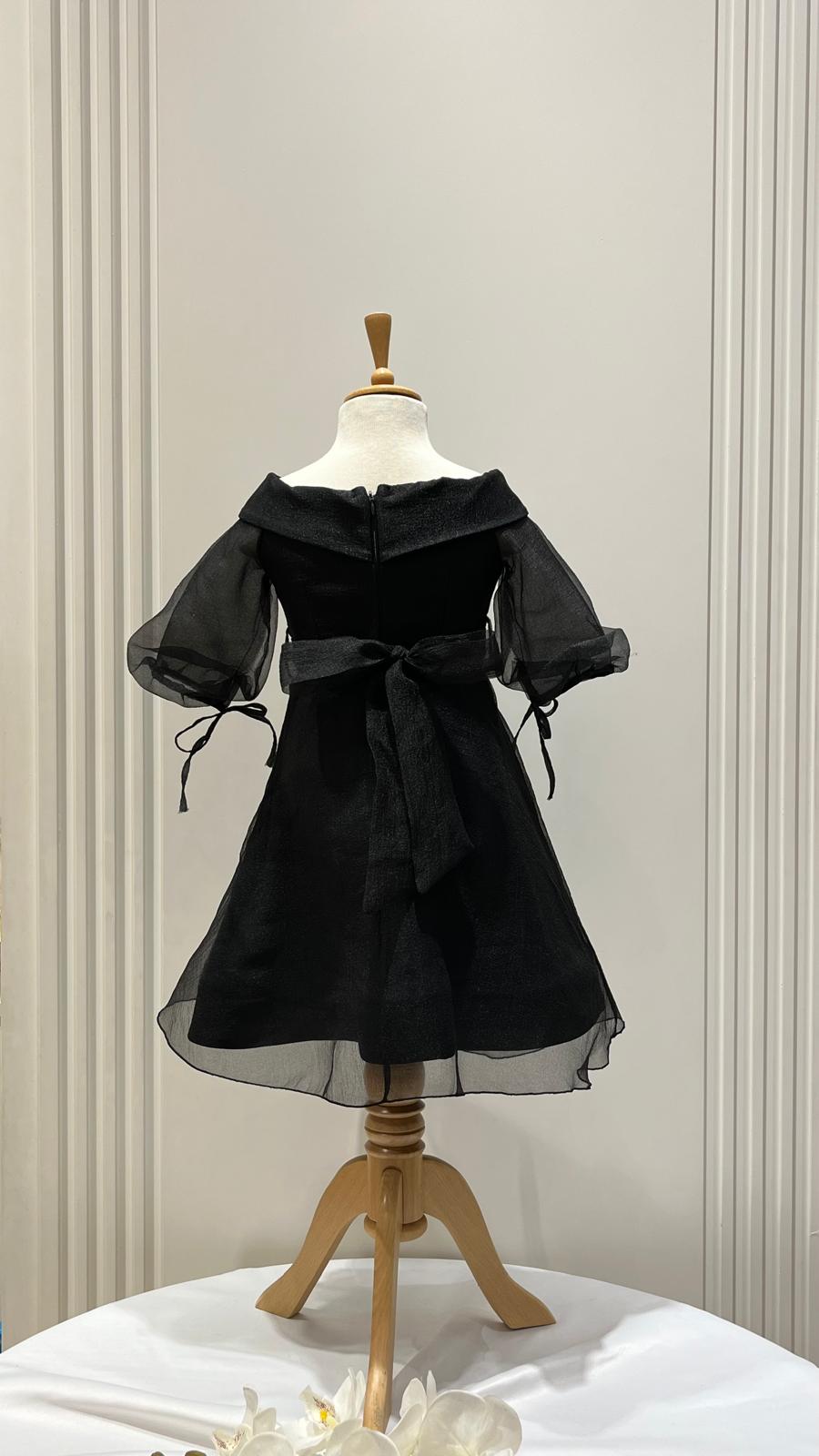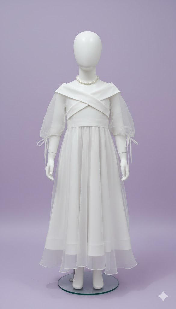 Kız Çocuk Kayık Yaka Kemerli Uzun Tül Giydirmeli Abiye Elbise