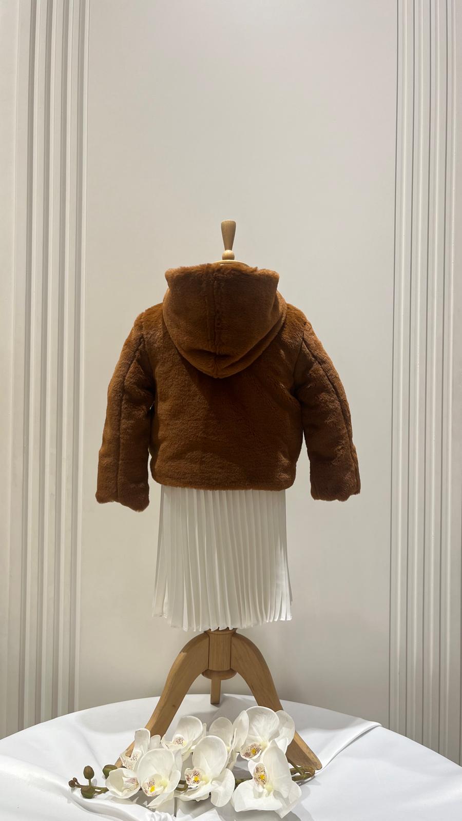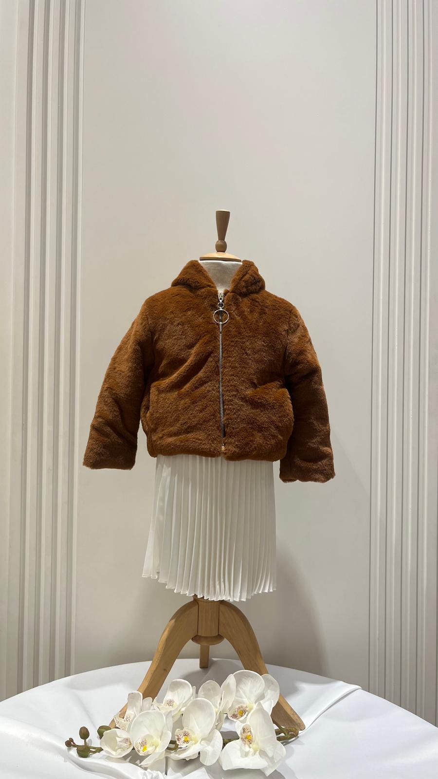 Kız Çocuk Kapşonlu Fermuarlı Cepli Peluş Mont