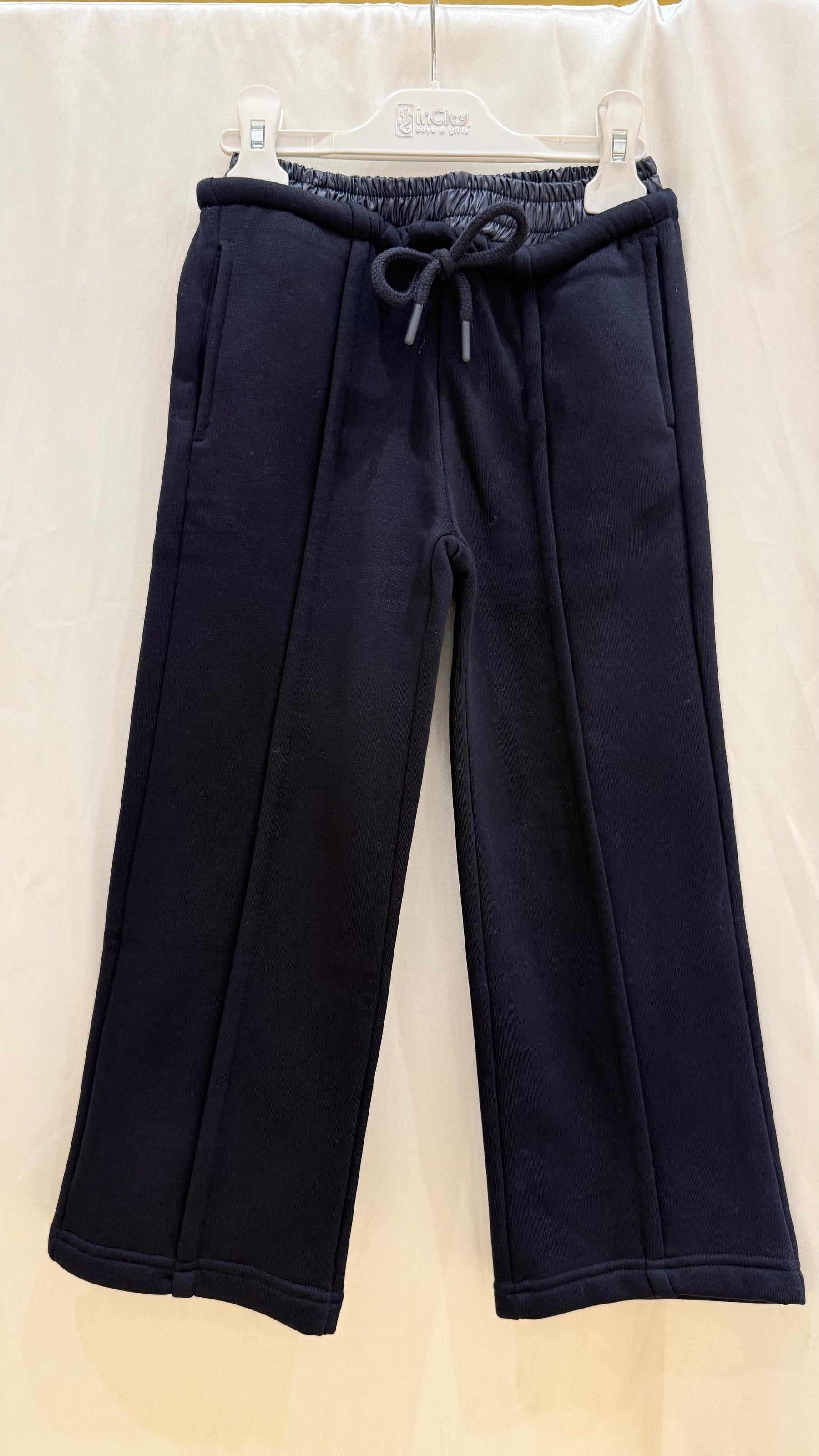 Kız Çocuk Oversize Suni Deri Kemerli Kordonlu Nervürlü Bol Paça Eşofman Altı
