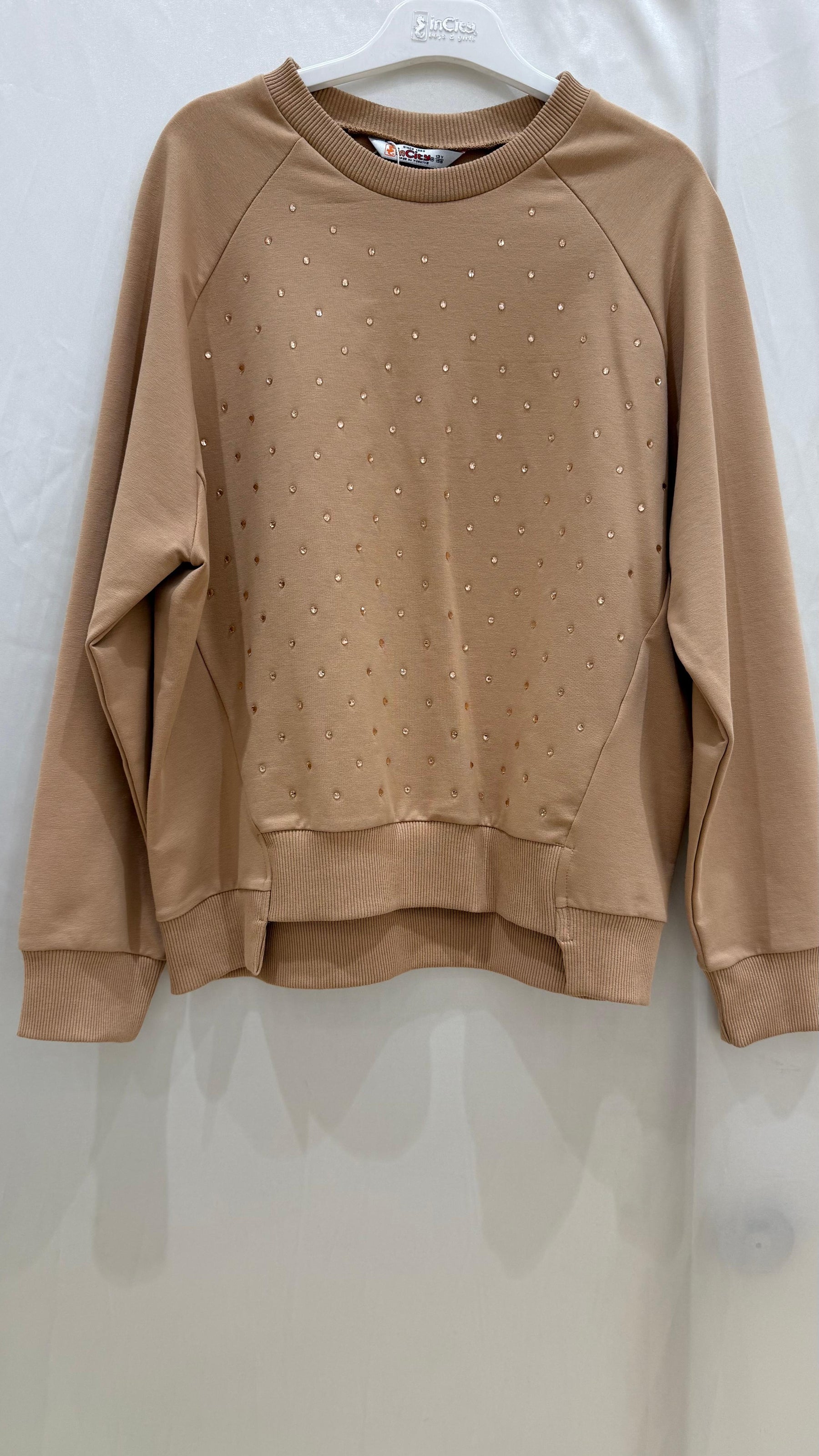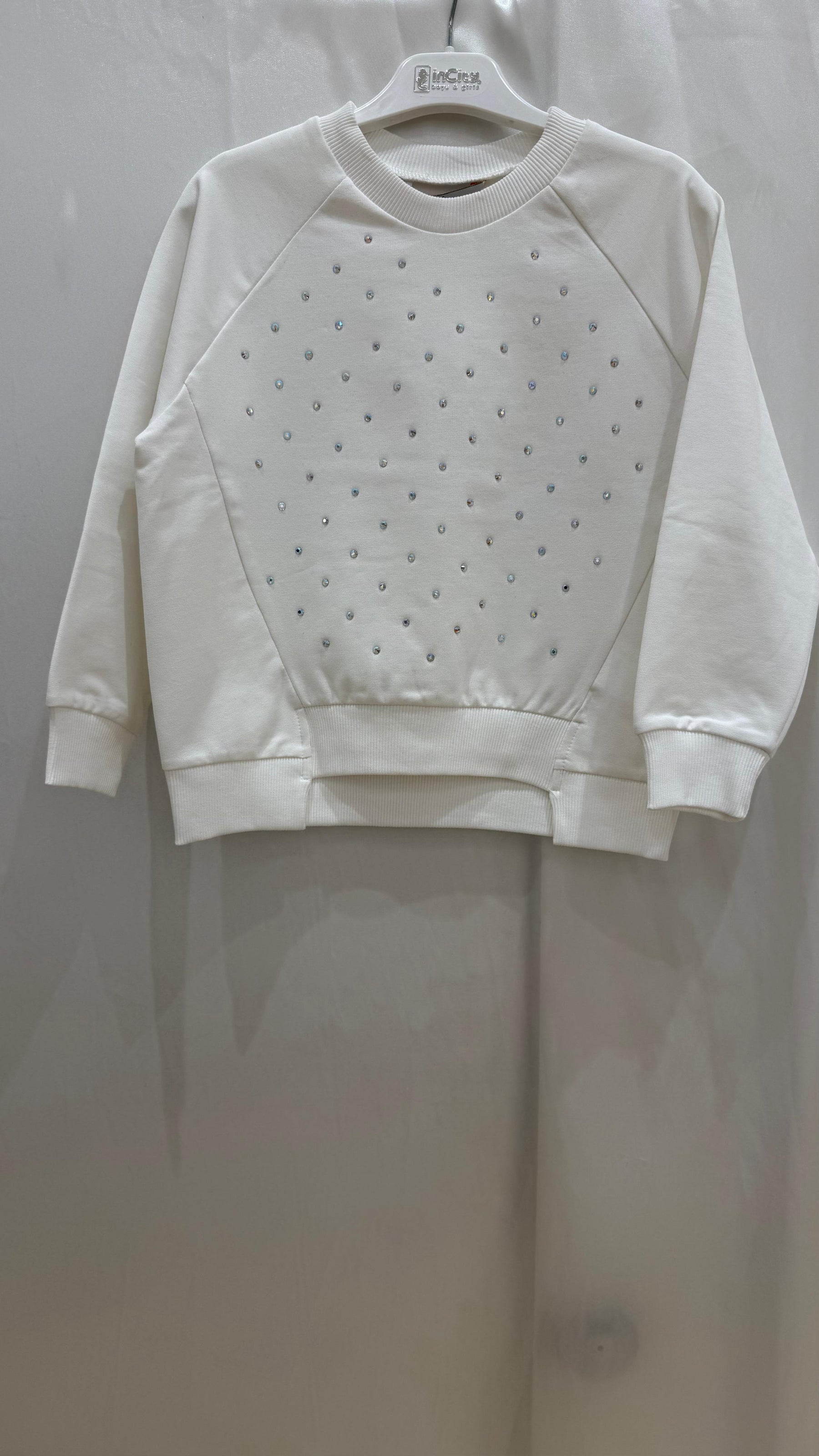 Kız Çocuk Taş Detaylı Bisiklet Yaka Sweat