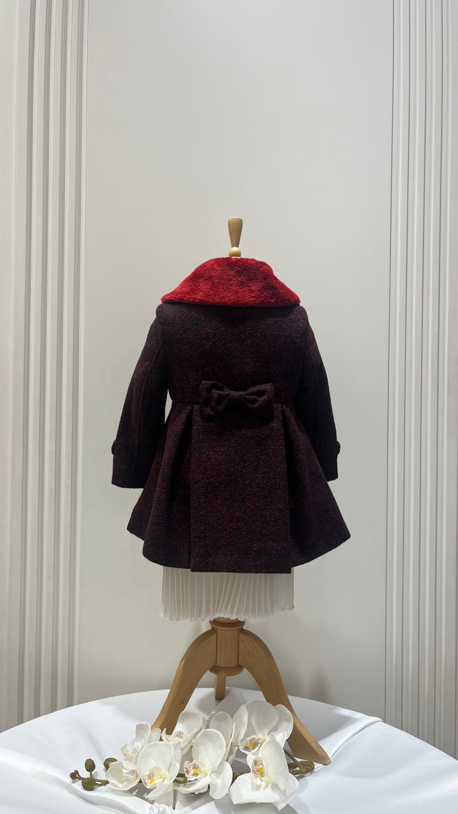 Kız Çocuk Kürk Yakalı Düğmeli Fiyonklu Pensli Kaşe Mont