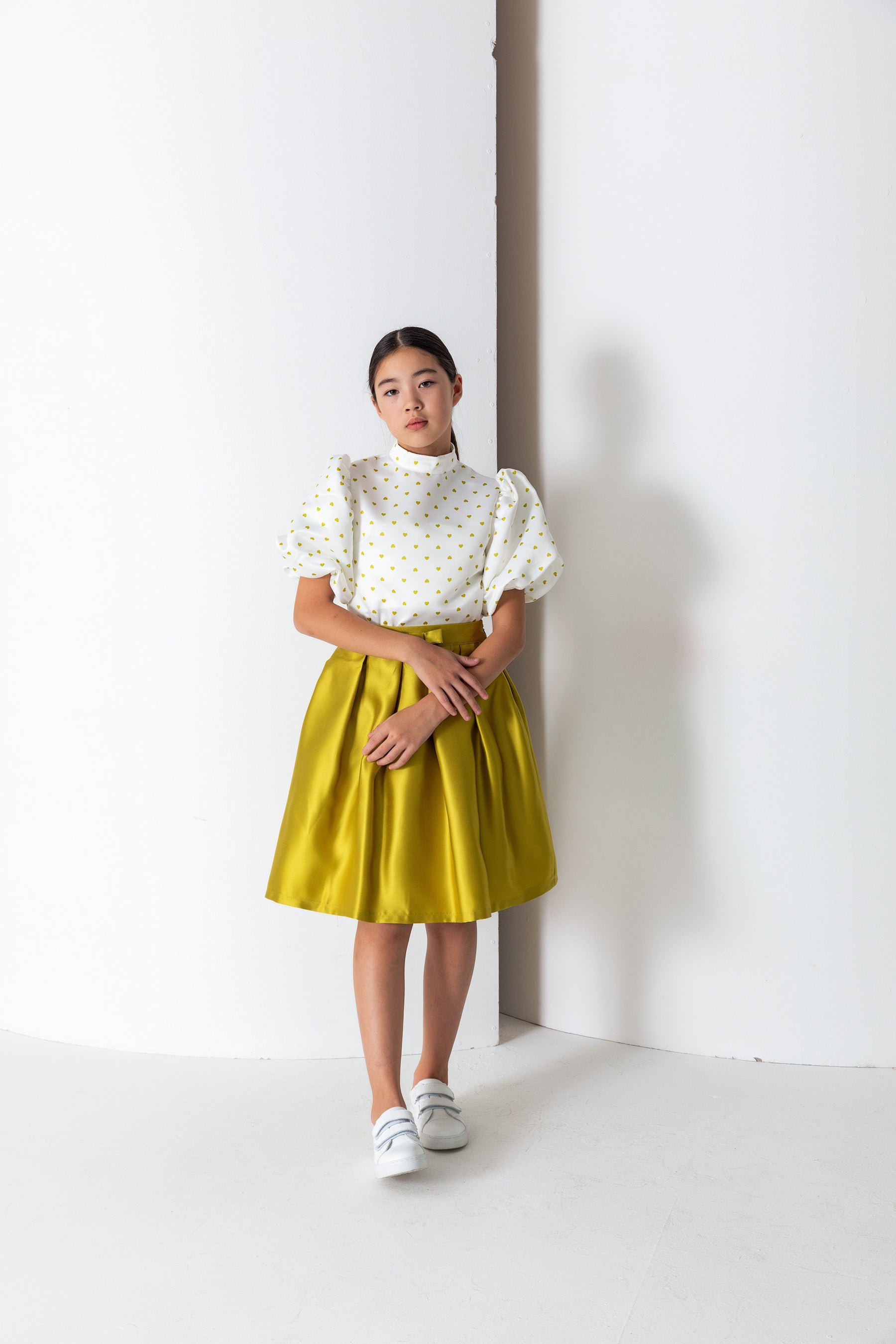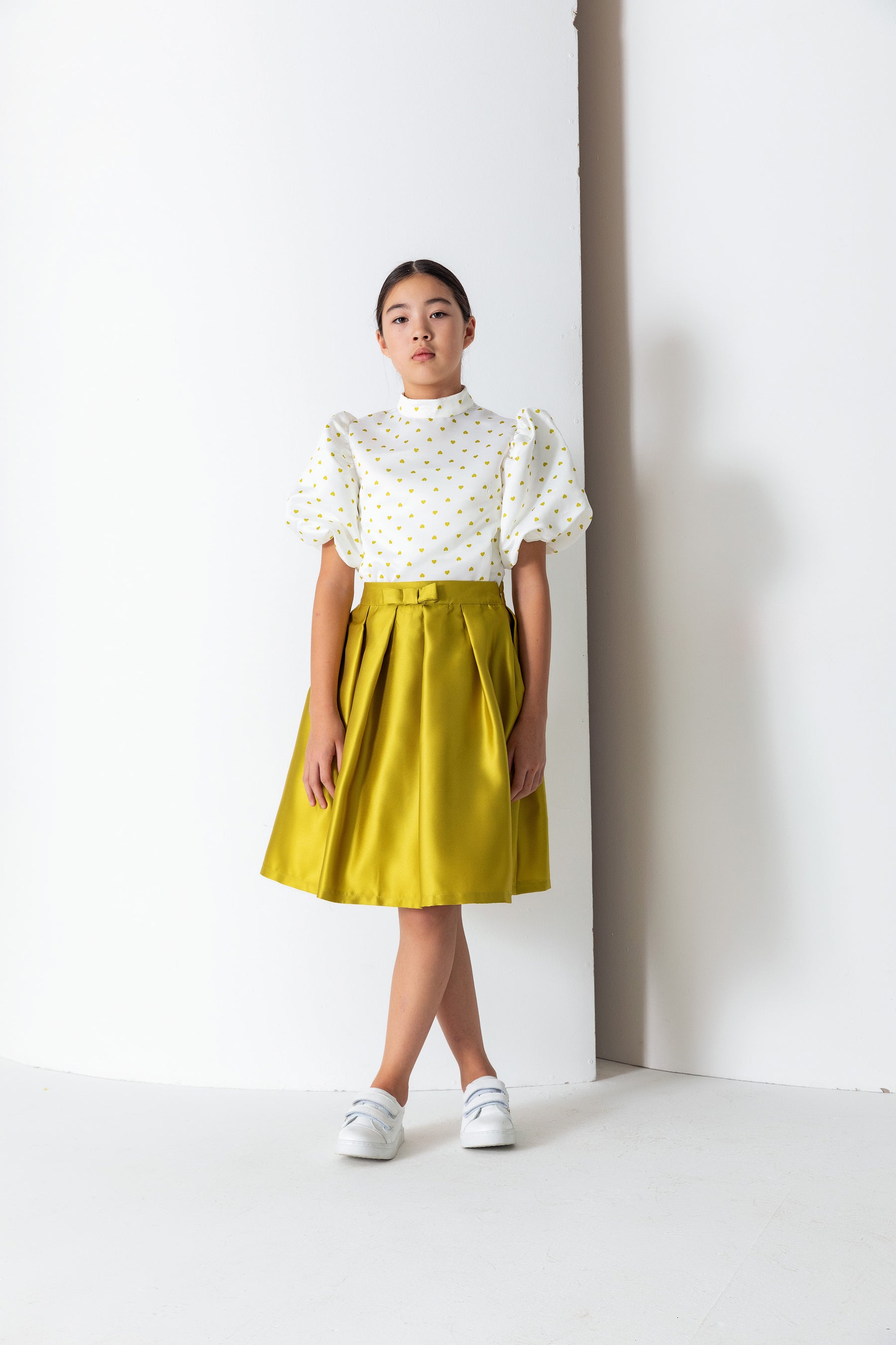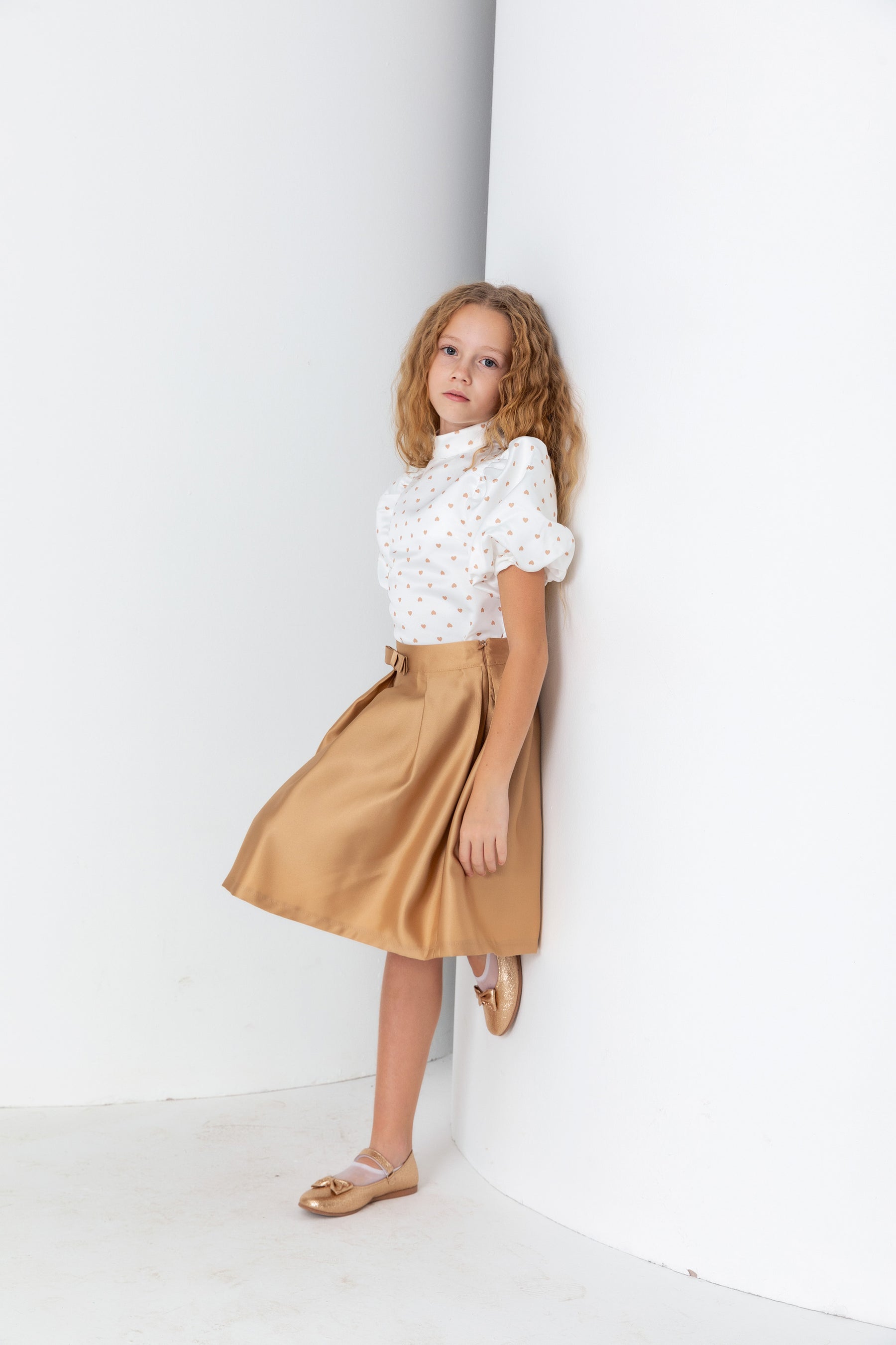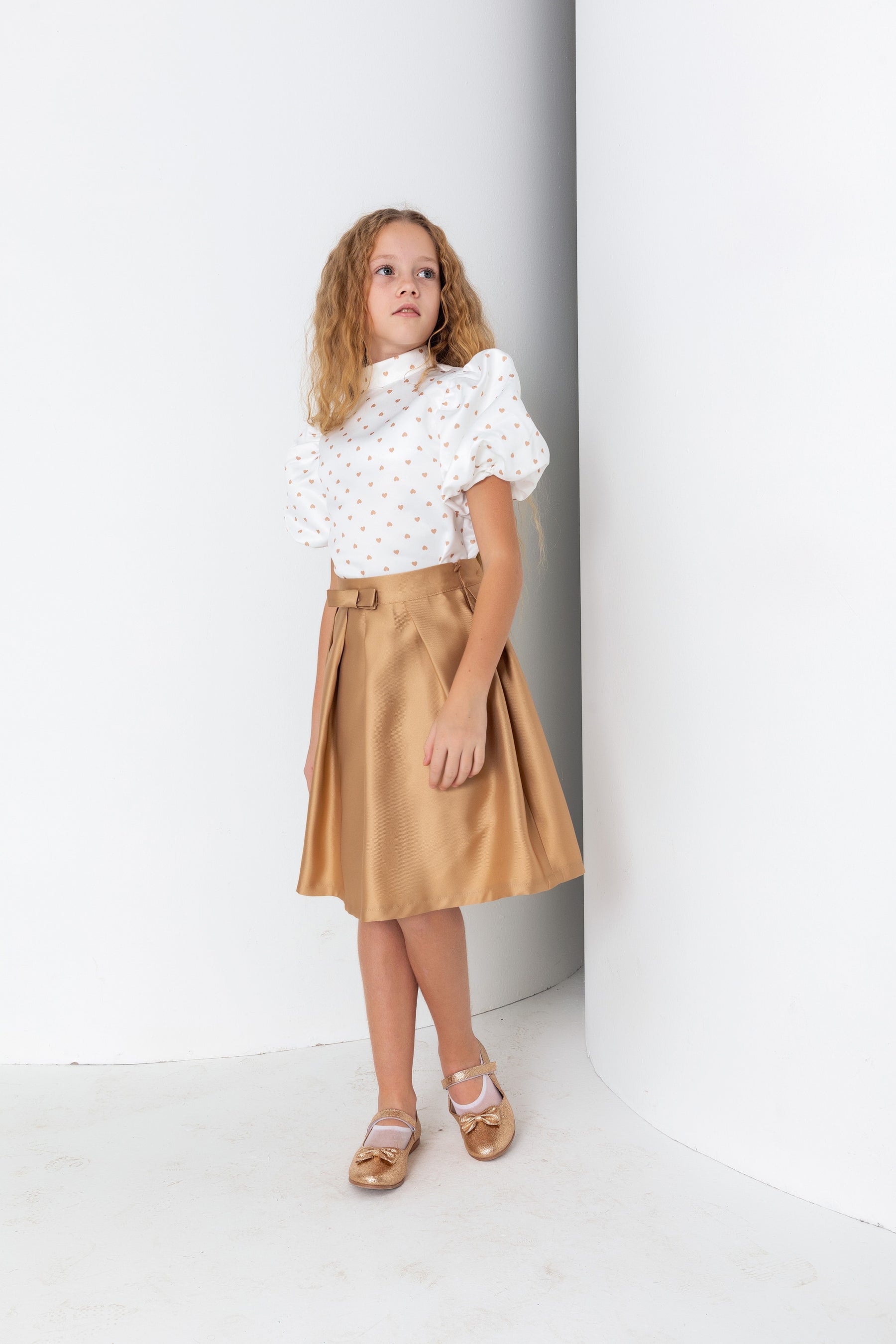 Kız Çocuk Hakim Yaka Balon Kol Desenli Saten Bluz