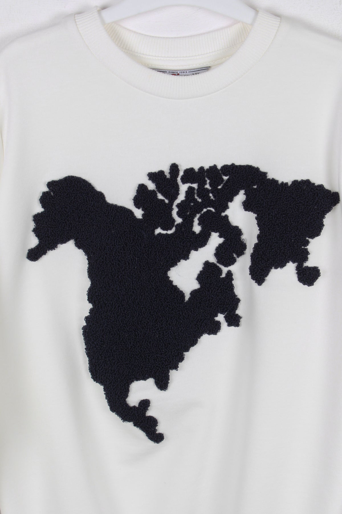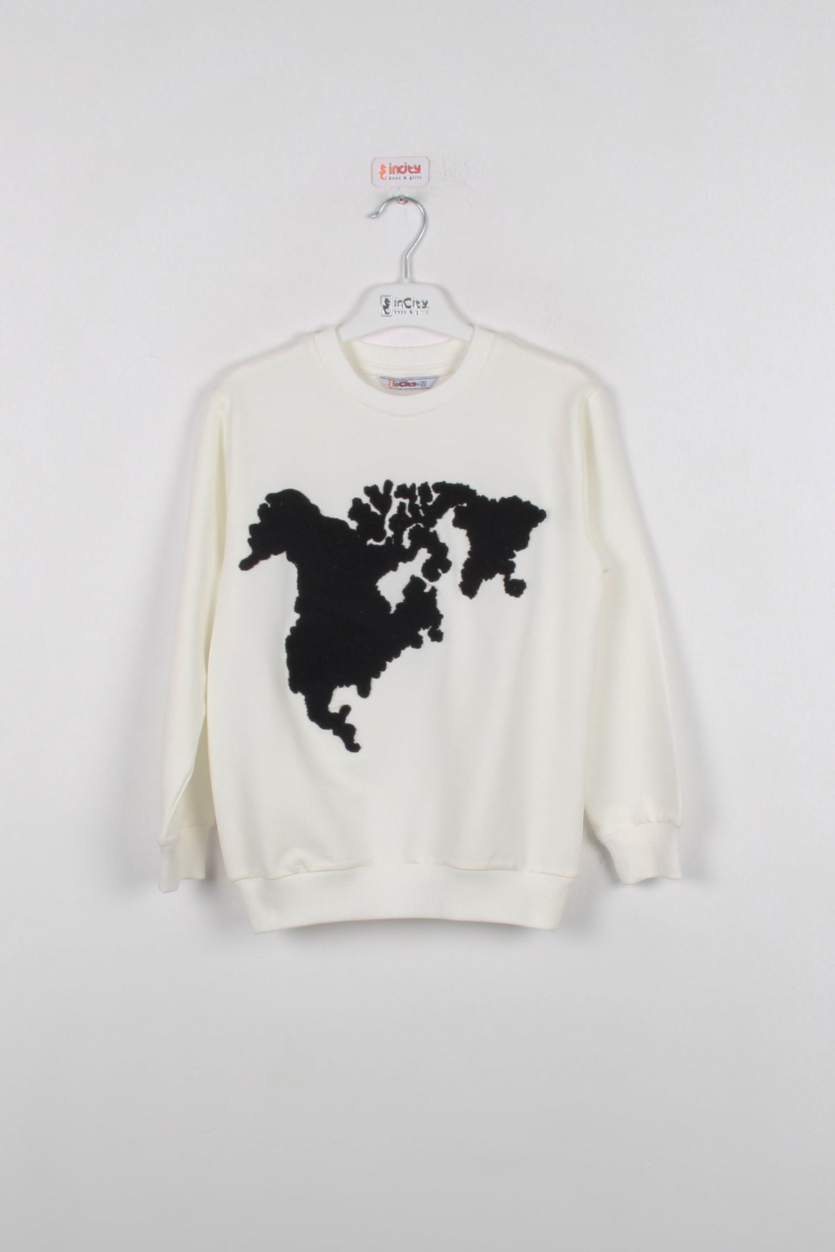 InCity Kids Erkek Çocuk Peluş Kuzey Amerika Haritası Detaylı Ekru Sweatshirt