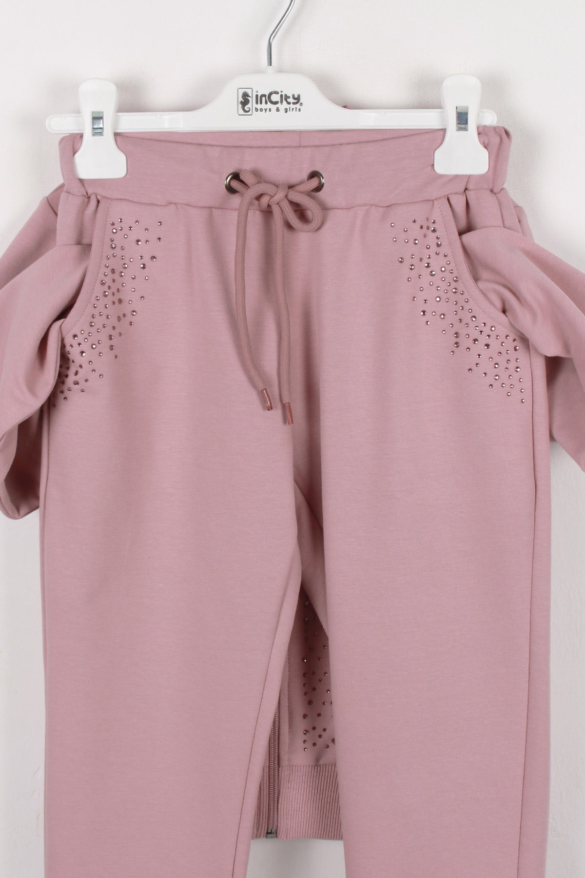 InCity Kids Kız Çocuk Taş Detaylı Şık Eşofman Takımı (2 Parça)