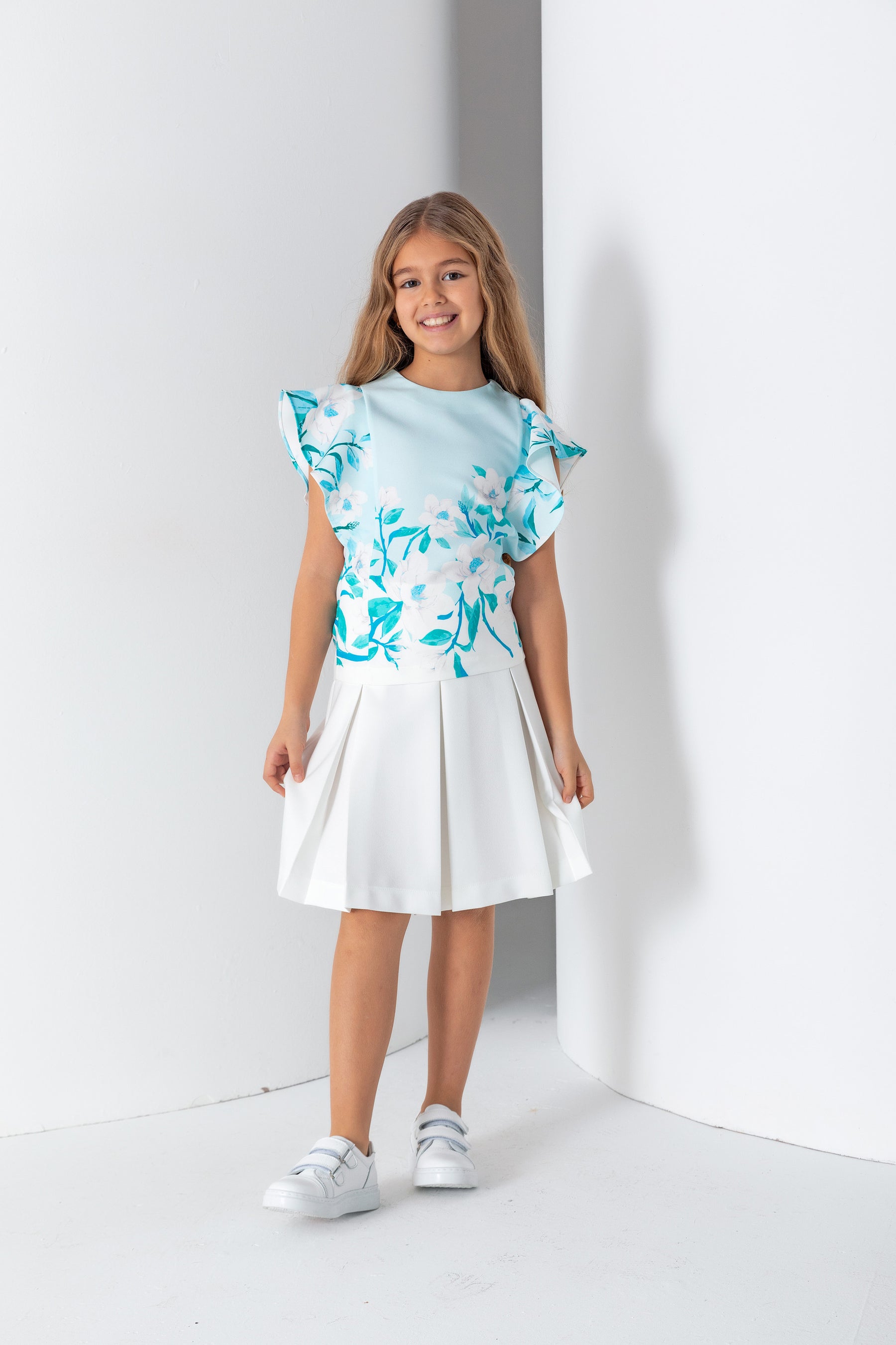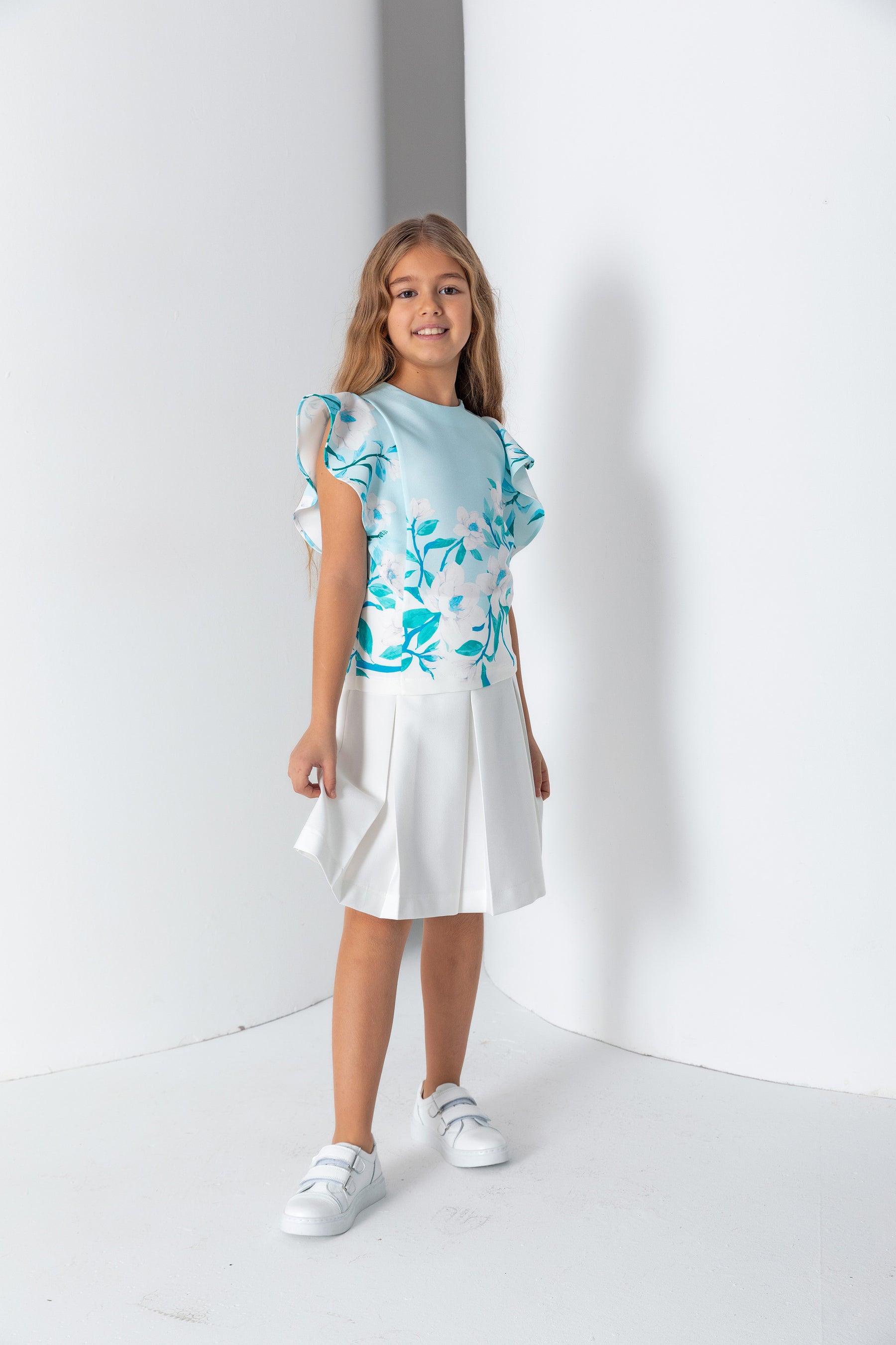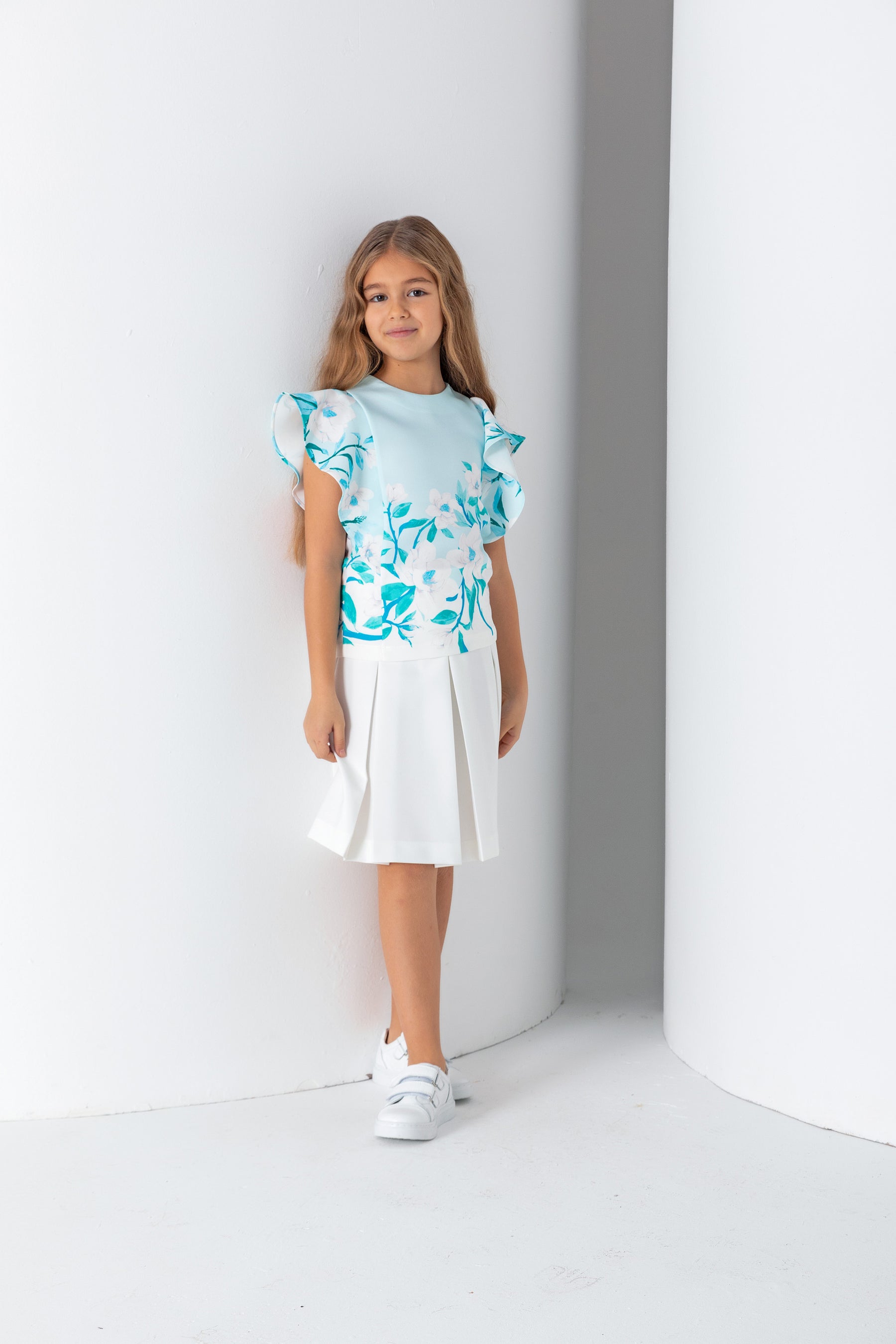 Kız Çocuk Bisiklet Yaka Şal Kol Bluz - Turkuaz/Mint