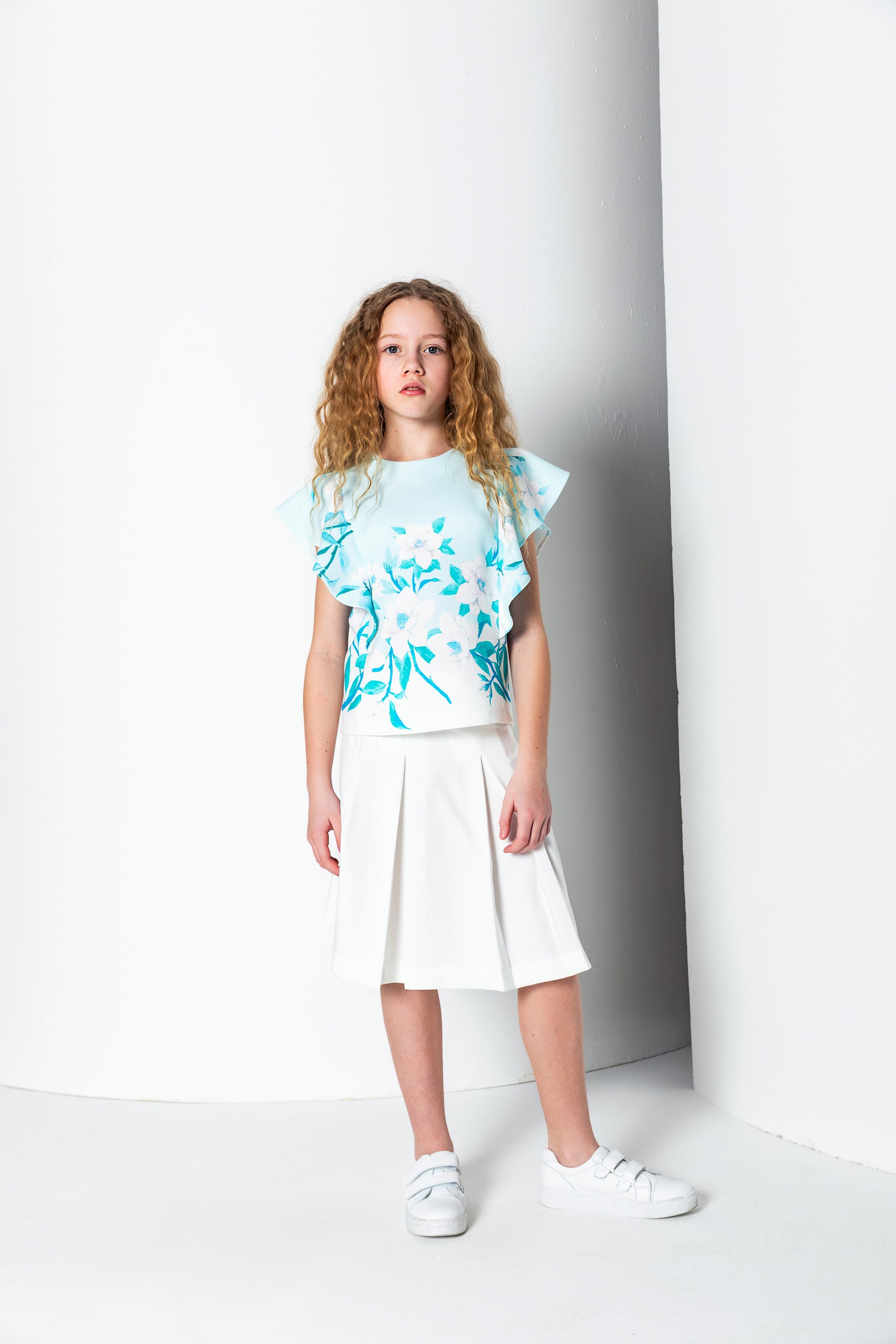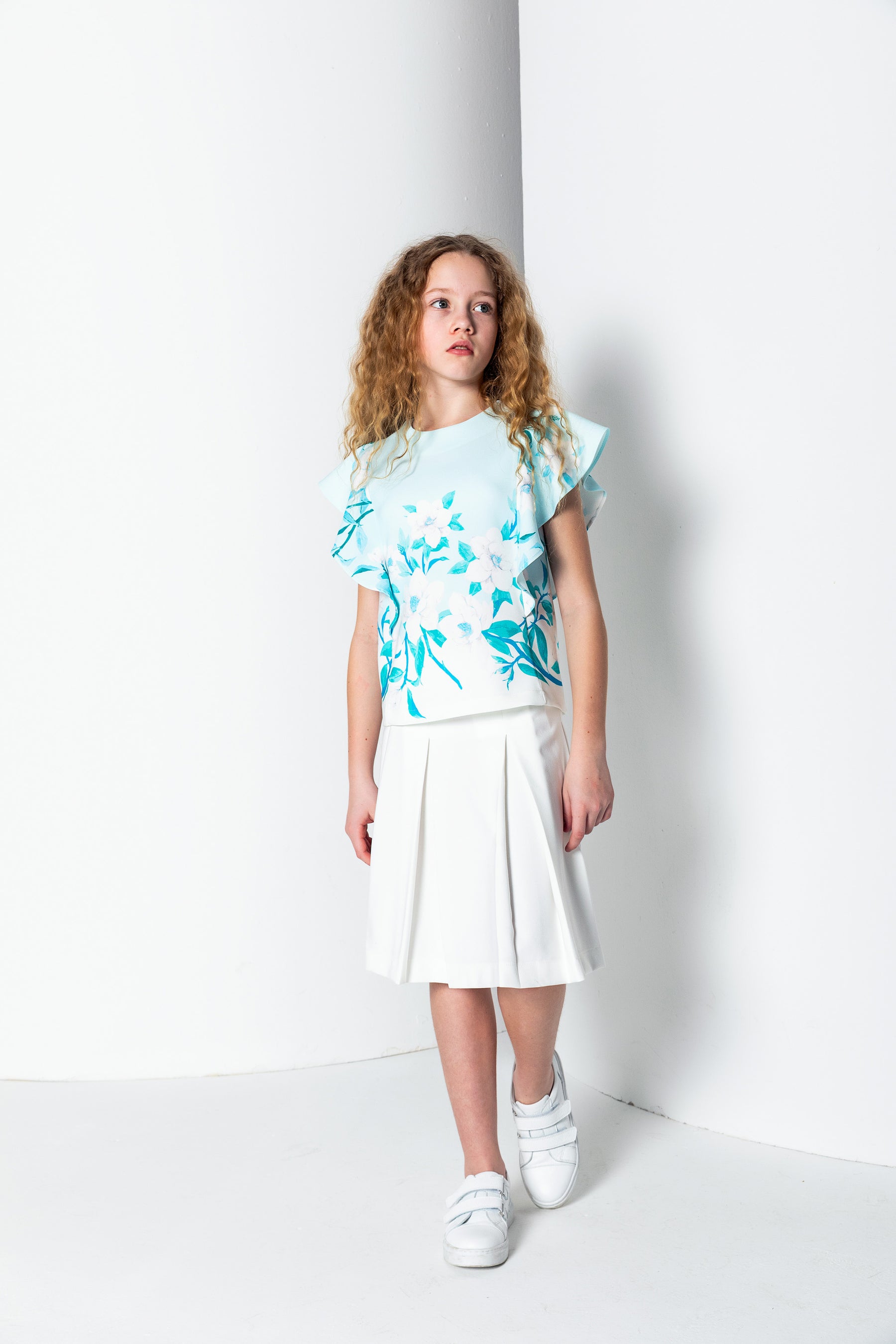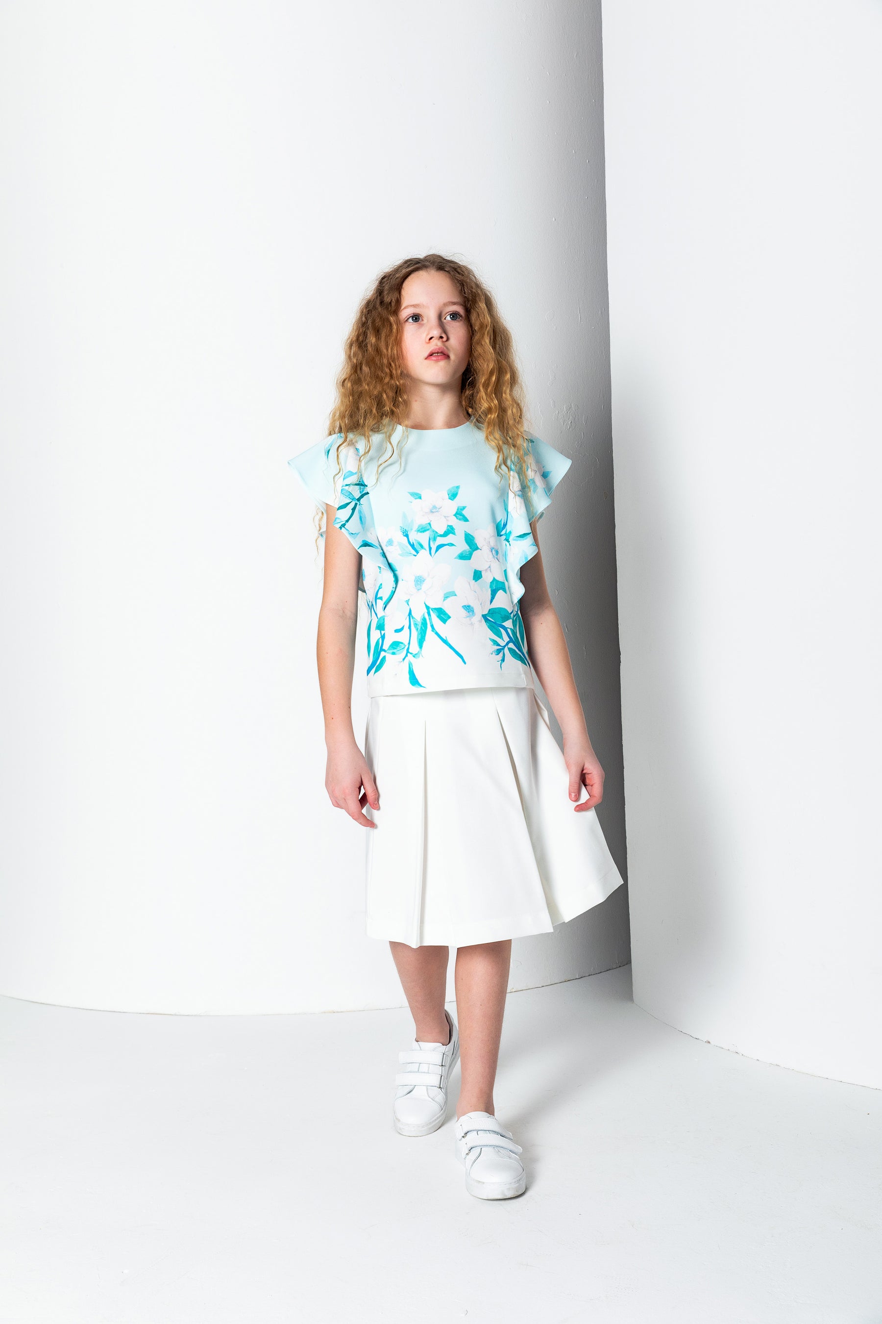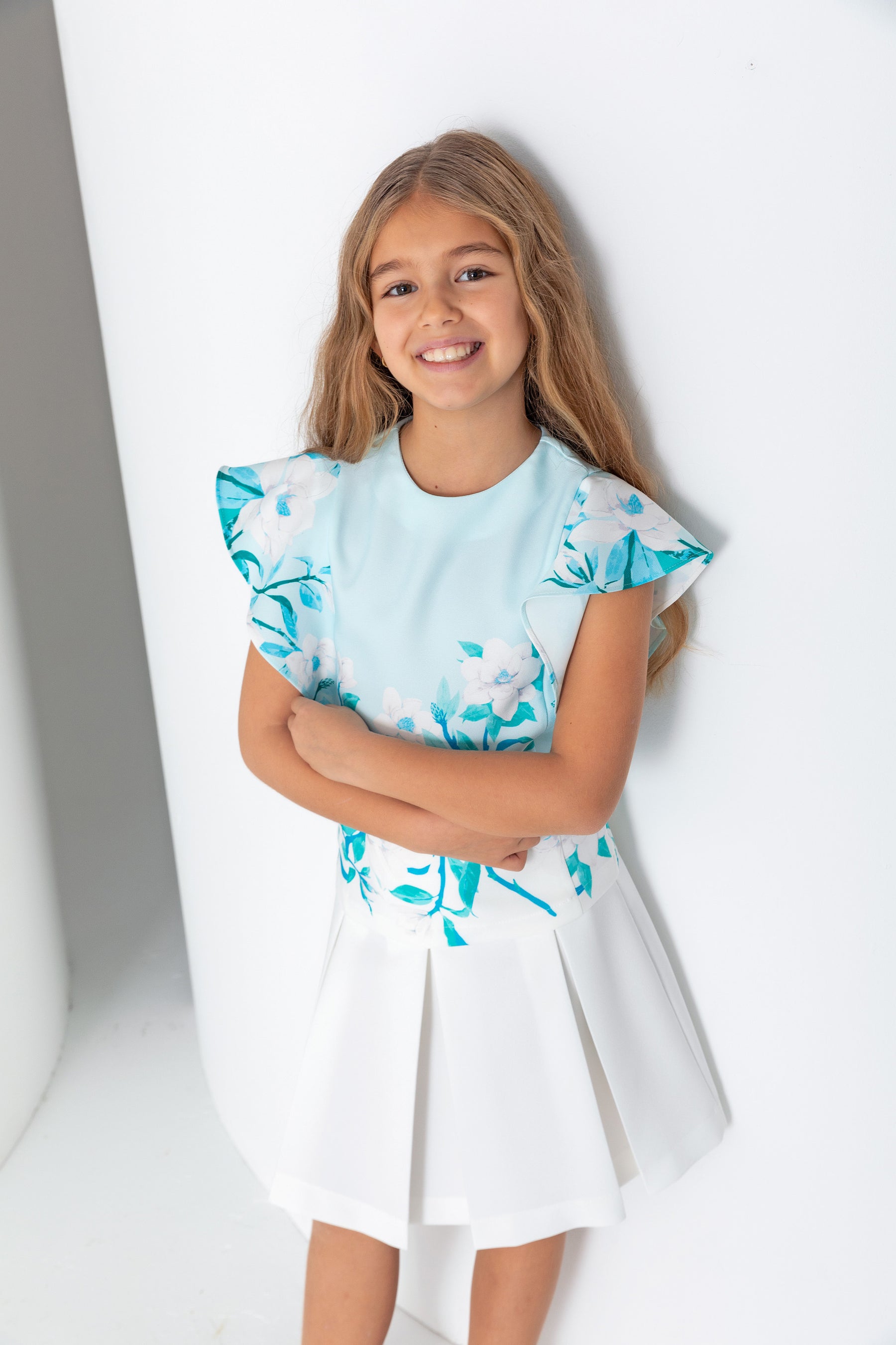 Kız Çocuk Bisiklet Yaka Şal Kol Bluz - Turkuaz/Mint