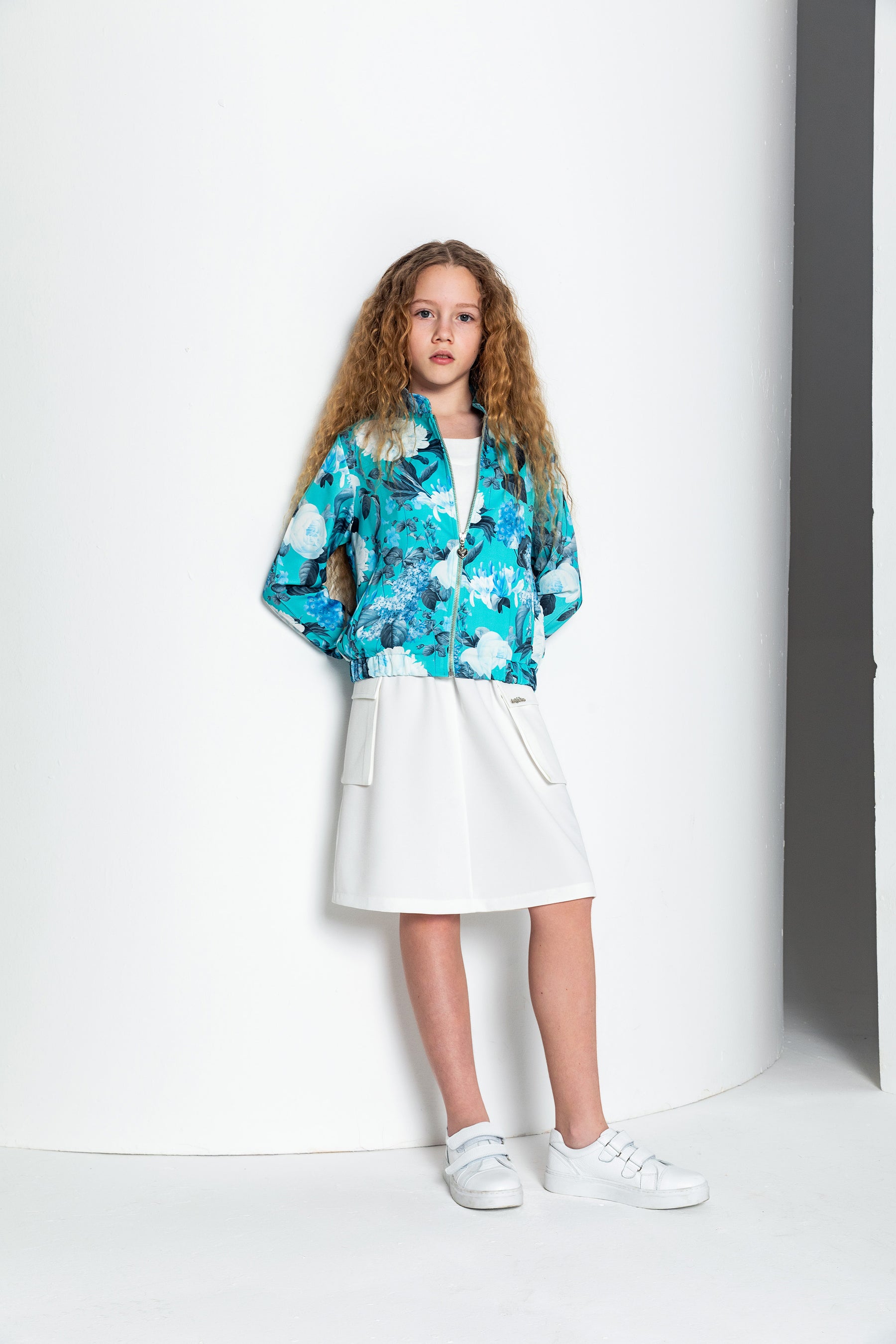 Kız Çocuk Fermuar Detaylı Hakim Yaka Ceket - Turkuaz/Mint
