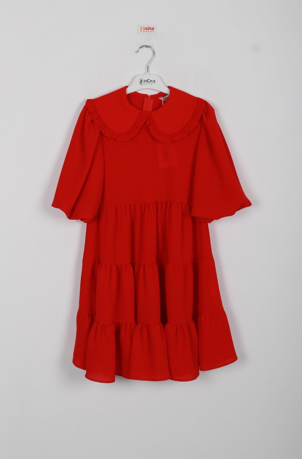 Kız Çocuk Bebe Yaka Yarım Kol Oversize Kat-Kat Elbise - Kırmızı