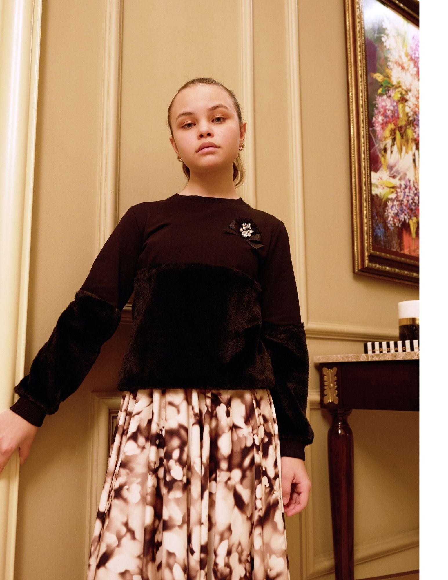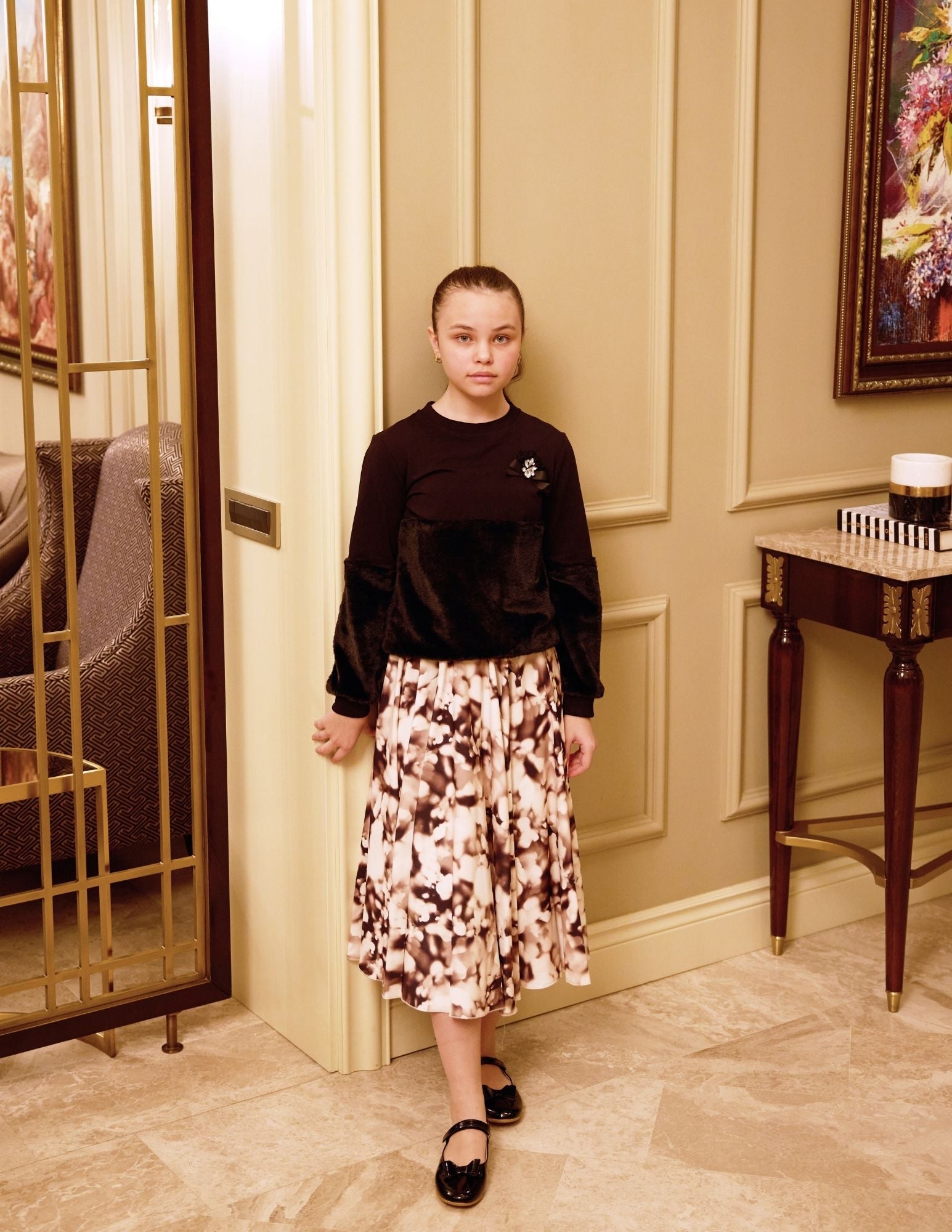 Incity Kız Çocuk Pileli Desenli Bej Midi Etek